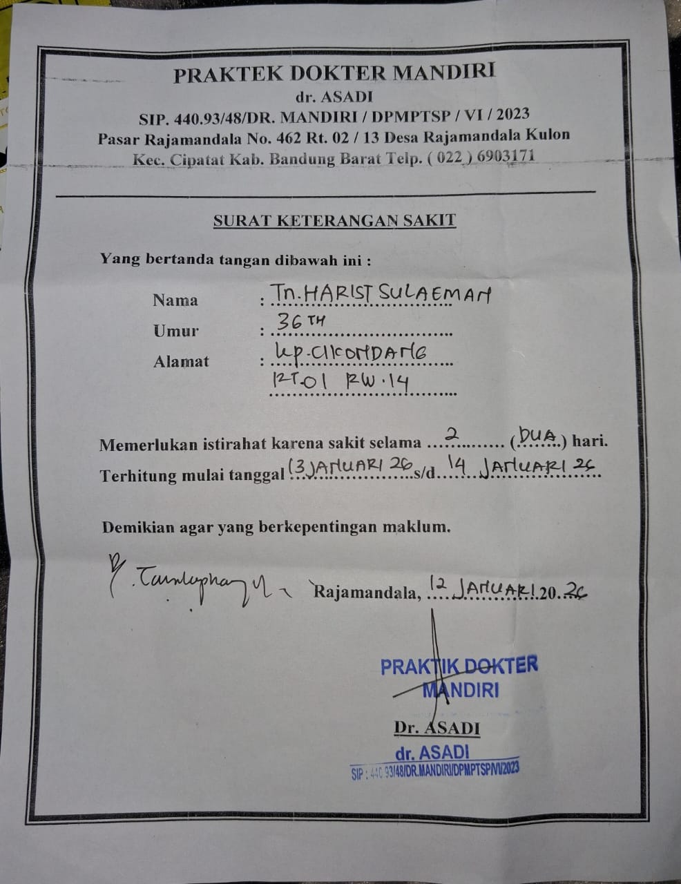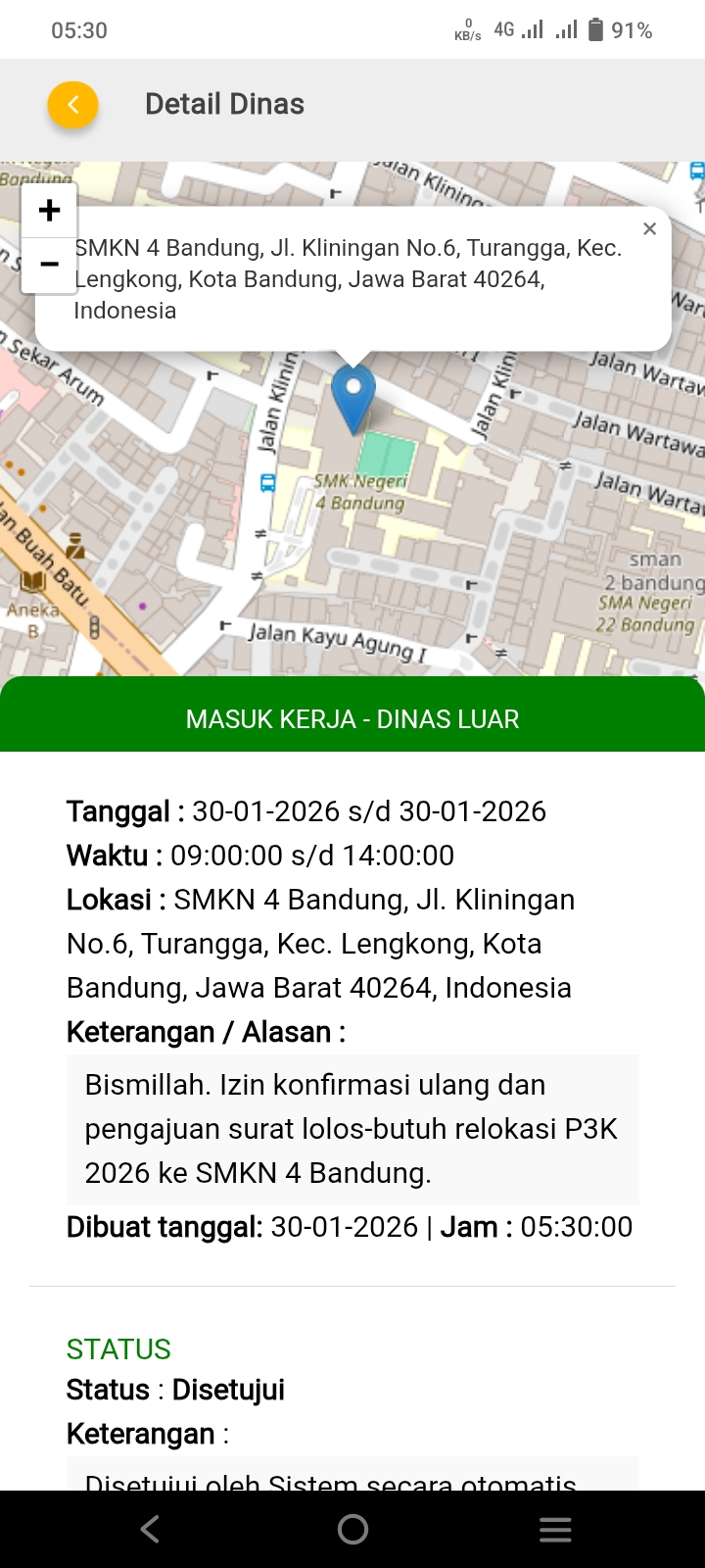 | 2026-01-29 | Dodi Permana Hidayat | Kamis | Jam 12 | z tidak ada jam | Dinas Luar | Lihat |
