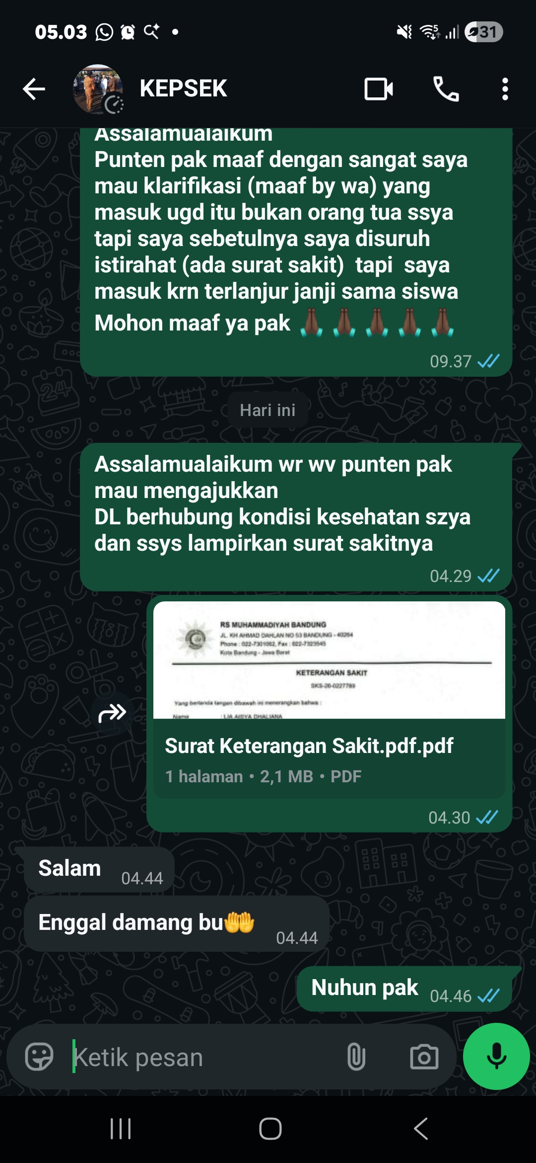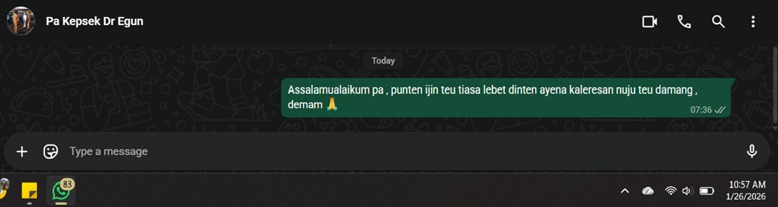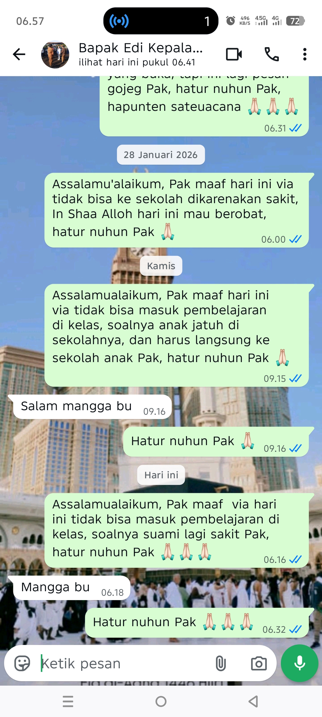 | 2026-02-05 | Silvia | Kamis | Jam 5 | X BR C | Izin Kepsek | Lihat |