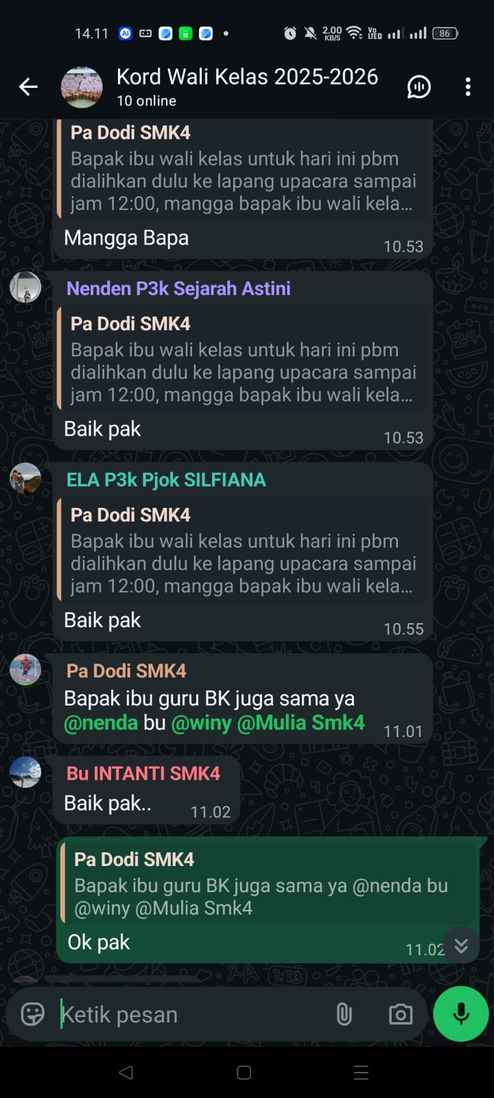 | 2026-01-29 | Wiwin Winarsih | Kamis | Jam 11 | XI ATPH B | Tugas Tambahan | Lihat |
