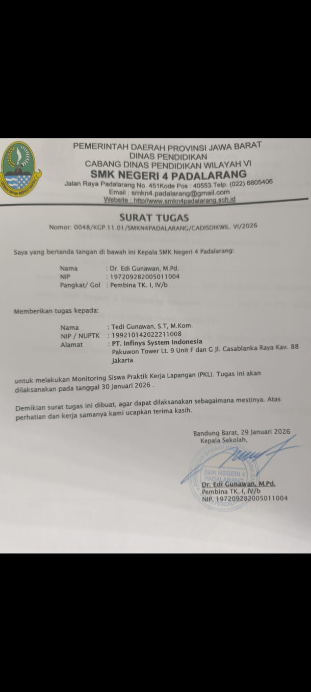 | 2026-02-26 | Rd. Angga Dwi J | Kamis | Jam 9 | X RPL B | Tugas Tambahan | Lihat |