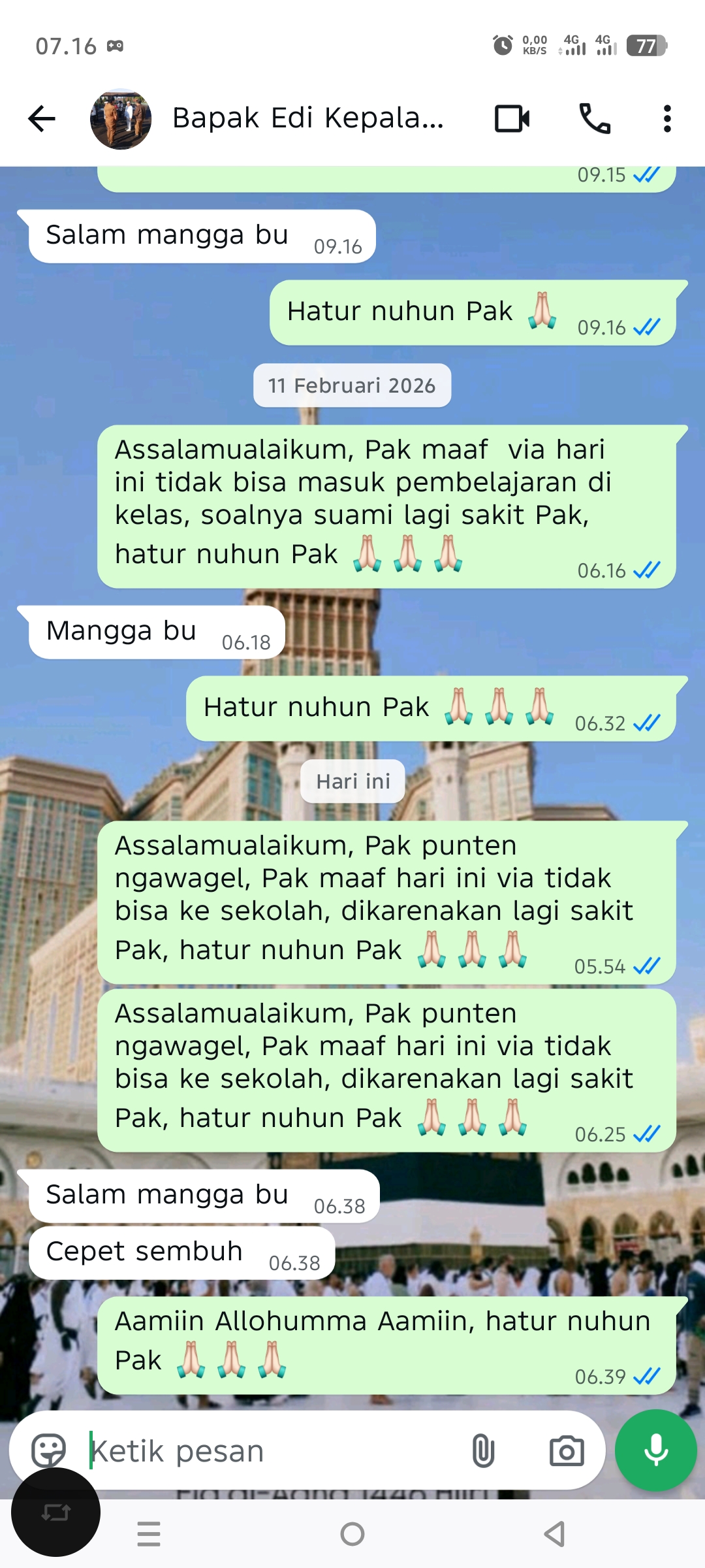 | 2026-02-05 | Silvia | Kamis | Jam 6 | X BR C | Izin Kepsek | Lihat |